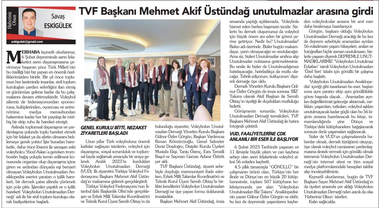 Türk Voleybolunun basın duayenlerinden Sevgili Enver Bağlarbaşı’nın büyük emekle yıllardır yayın hayatına devam eden Manşet Voleybolun Sesi Dergisi Kasım 2024 222. sayısında Voleybolun Unutulmazları Derneğinin Eskişehir Odunpazarı Belediyesi ile birlikte oluşturduğu VUD Hatıra Ormanı haberini sayfalarına taşıdı. Kendisine sesimize ses olduğu için teşekkür eder, kocaman sevgiler yollarız. ♥️🙏♥️